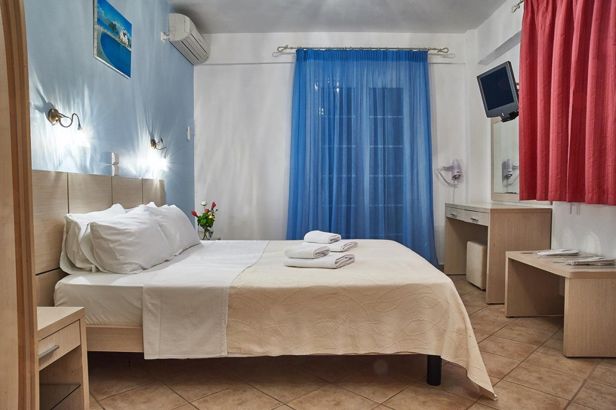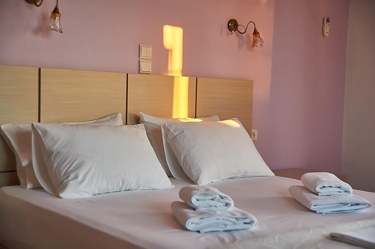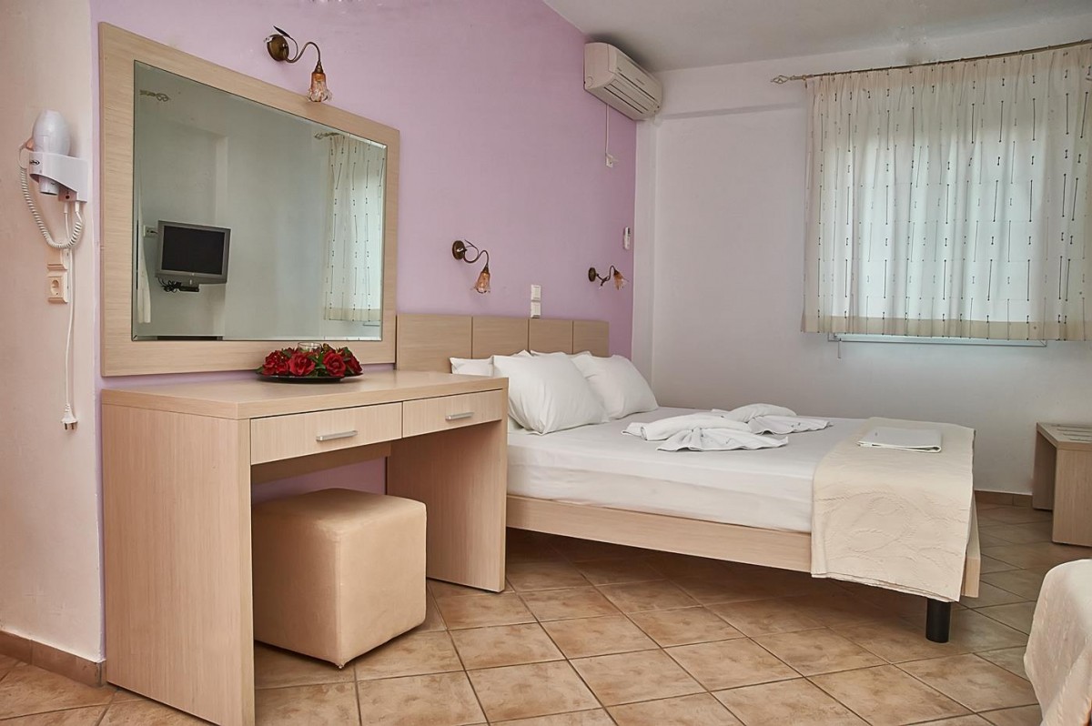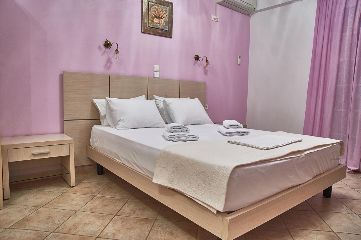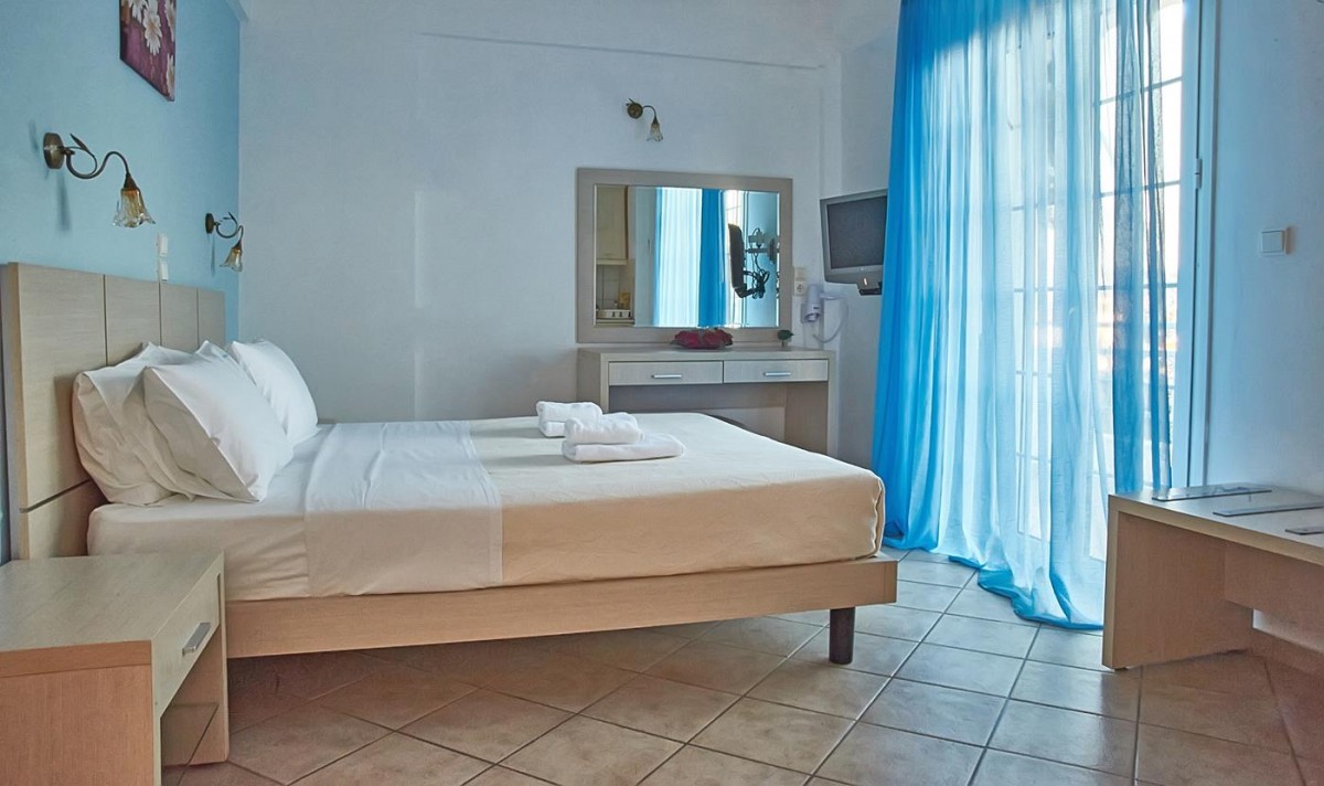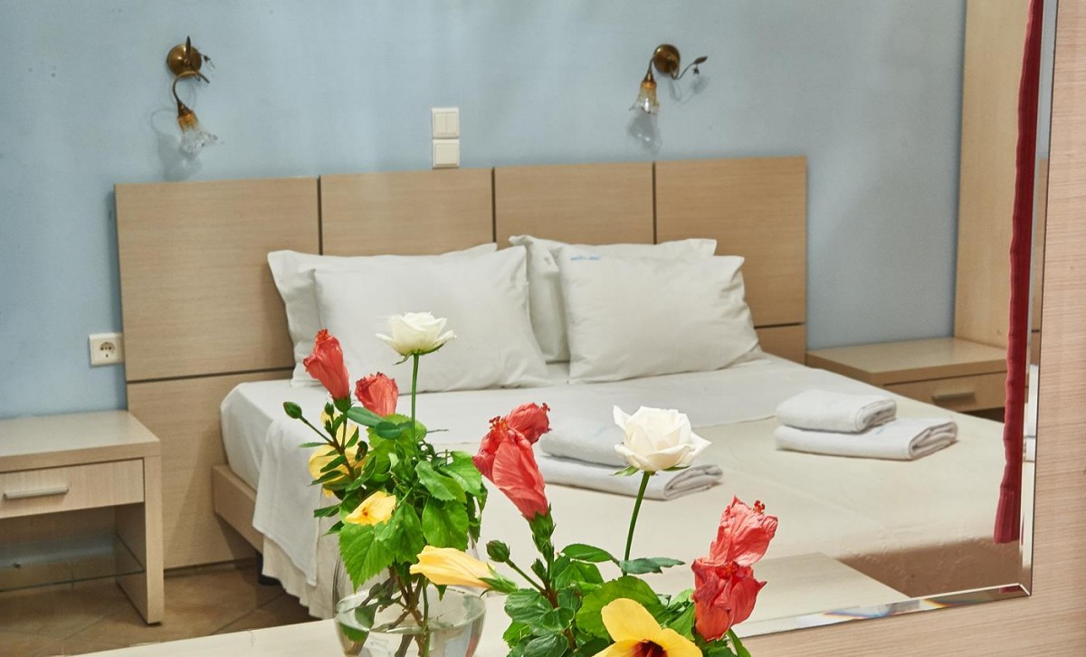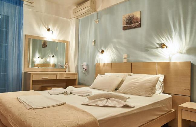 With a king size double bed. It has a small kitchen to make your own breakfast- no cooking (with fridge, toast maker, boiler and a coffee maker).