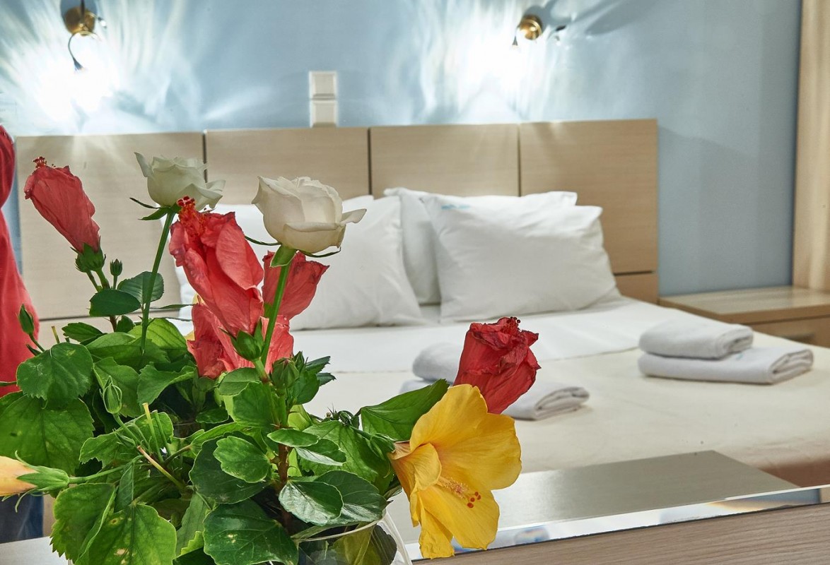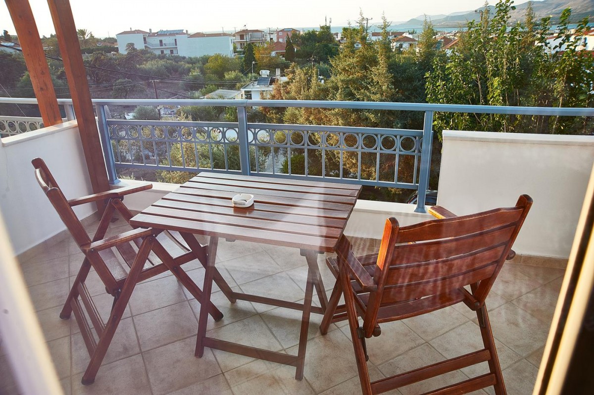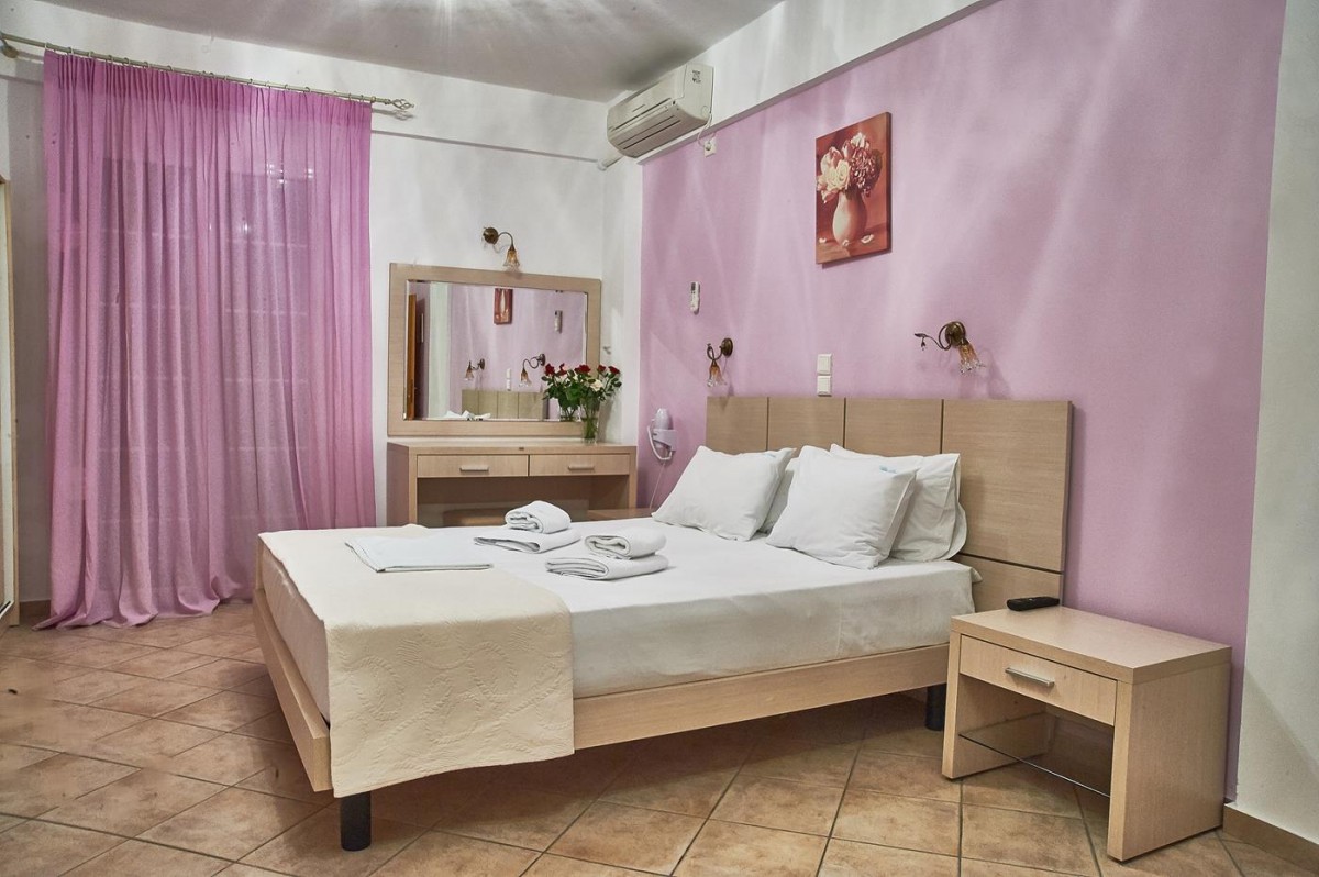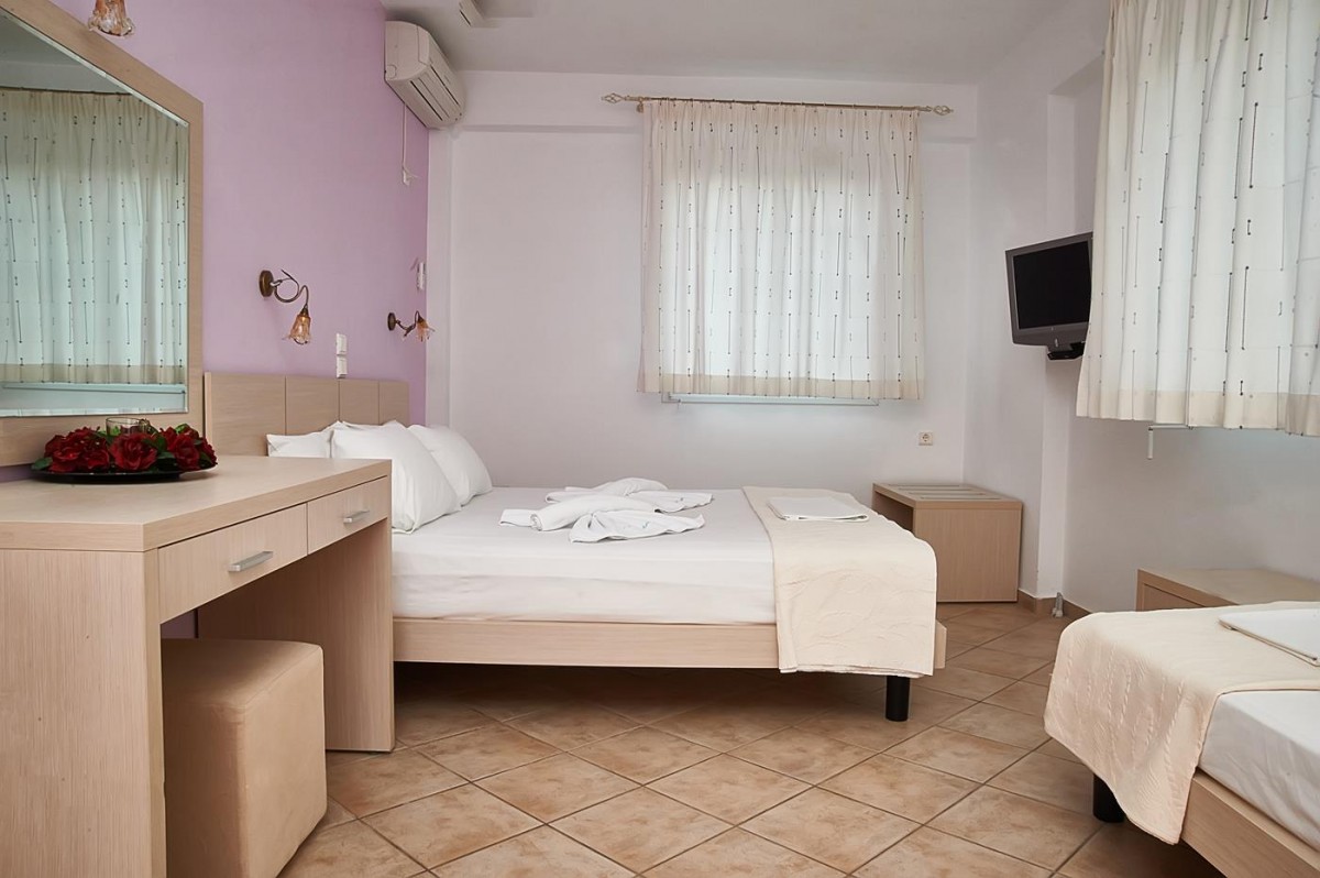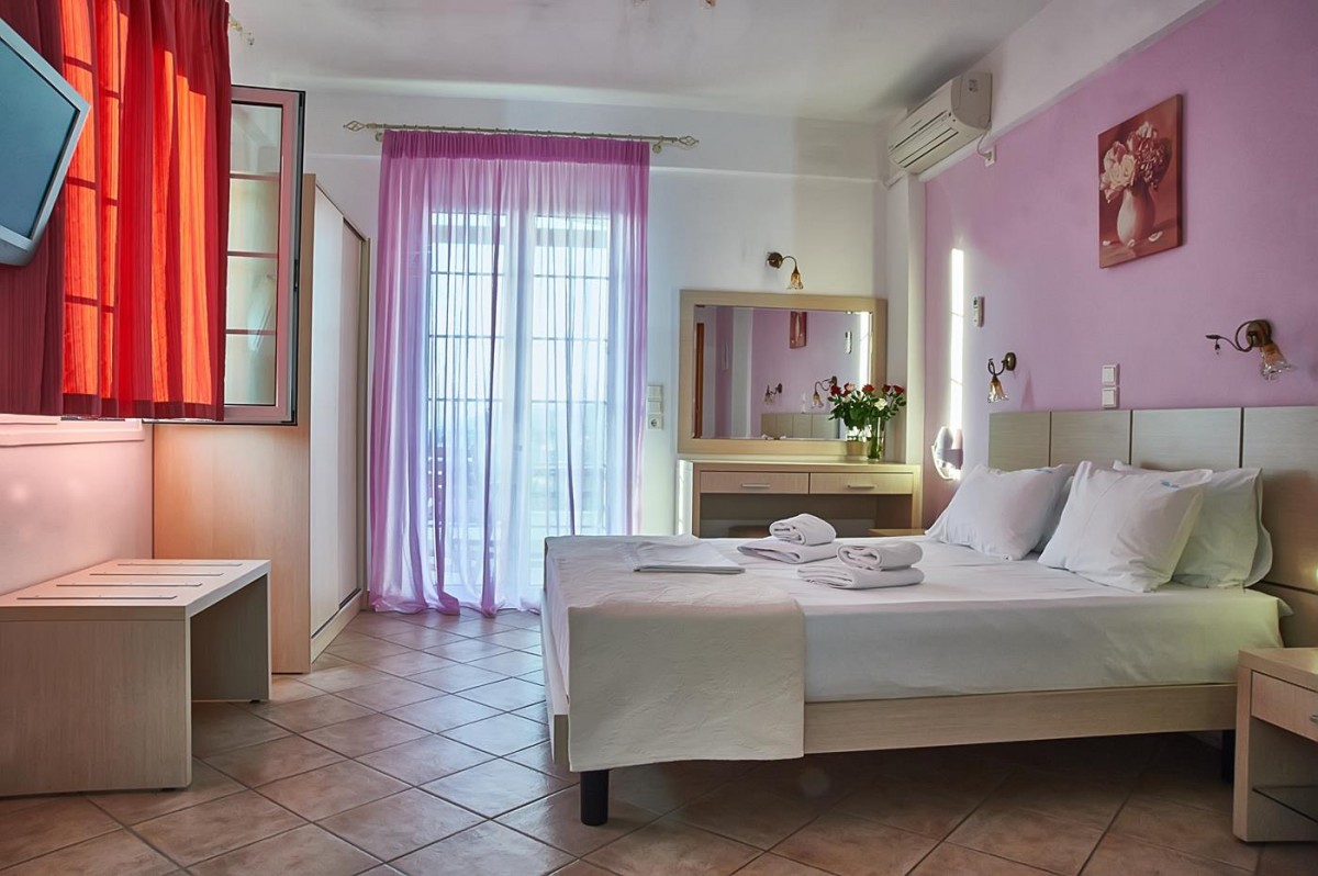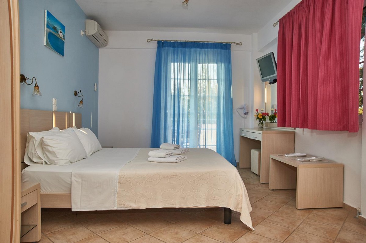 With a king size double bed. It has a small kitchen to make your own breakfast- no cooking (with fridge, toast maker, boiler and a coffee maker).