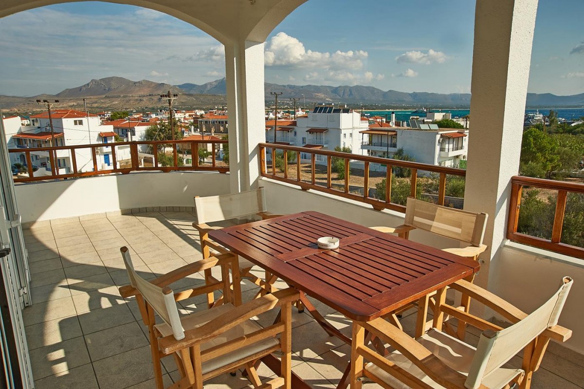 The apartments are 150 metres from port and 3 minutes walk from the islands tavernas and shops..